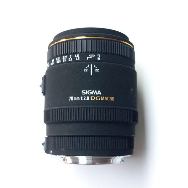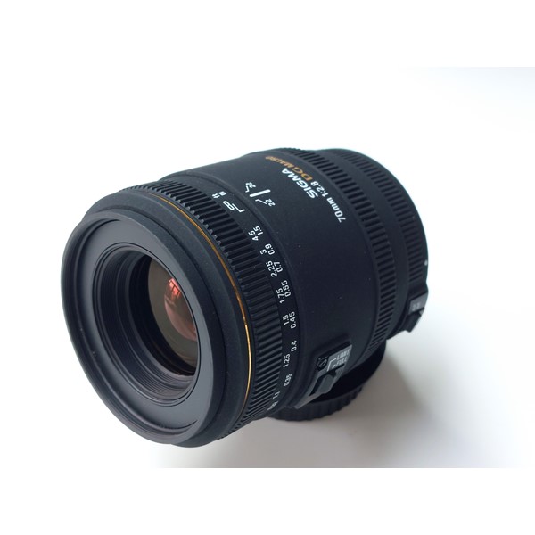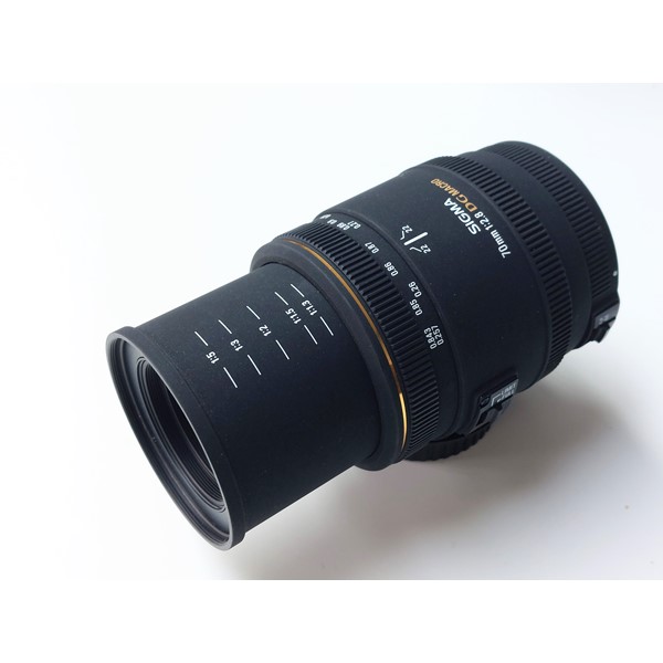Sigma EX DG 70mm 1:2.8 macrolens met Canon EF-vatting in zeer goede en werkende staat. De lens ziet er goed uit en functioneert perfect. Wordt geleverd met voor- en achterdop.
