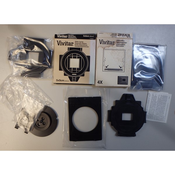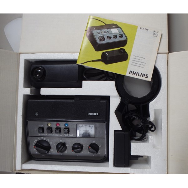 Komplete Kleurvergroter Vivitar VI met Powersuply en Maskers Kb, 5x5, 6x6. Met Philips PCA 060 Kleurenanalyser met Unicolor papierbox, Unicolor Combinatie Easel en dokalamp. Helemaal kompleet dus nu alleen nog een donkere kamer.