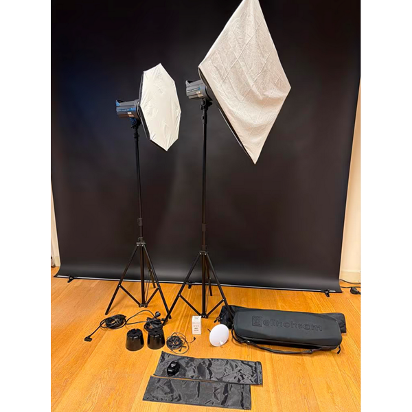 Complete Elinchrome D-lite RX 4 flitsset te koop. Inclusief 2 flitsers, 2 softboxen, statieven, transmitter, flitskabel, 2 reflectoren en bijbehorende tassen. Ideaal voor de beginnende of gevorderde fotograaf. Alles in goede staat en klaar voor gebruik.