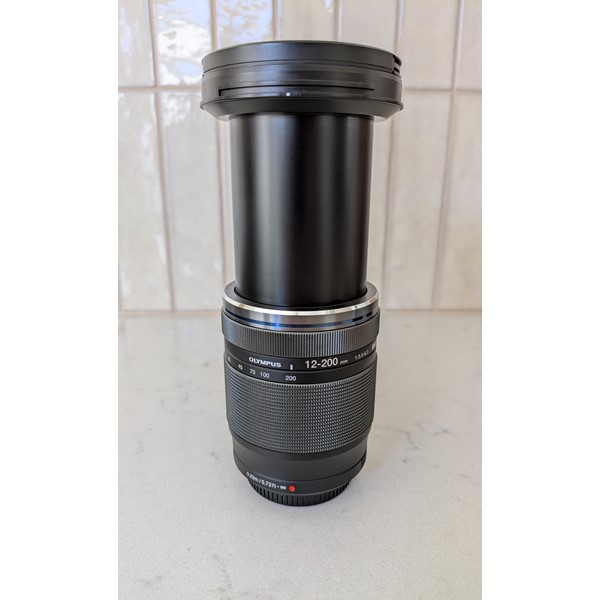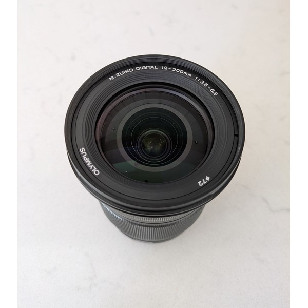 Net, weinig gebruikt Olympus M.Zuiko 12-200 objectief. Ik gebruik hem te weinig i.v.m. andere objectieven en te kleine maximale brandpuntsafstand voor mijn wensen. Superzoom, veelzijdig (groothoek tot tele) en daarmee ideaal voor bijvoorbeeld op reis. Glas is krasvrij, behuizing met minimale gebruikssporen.